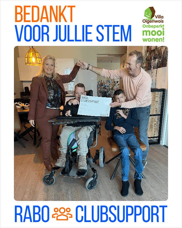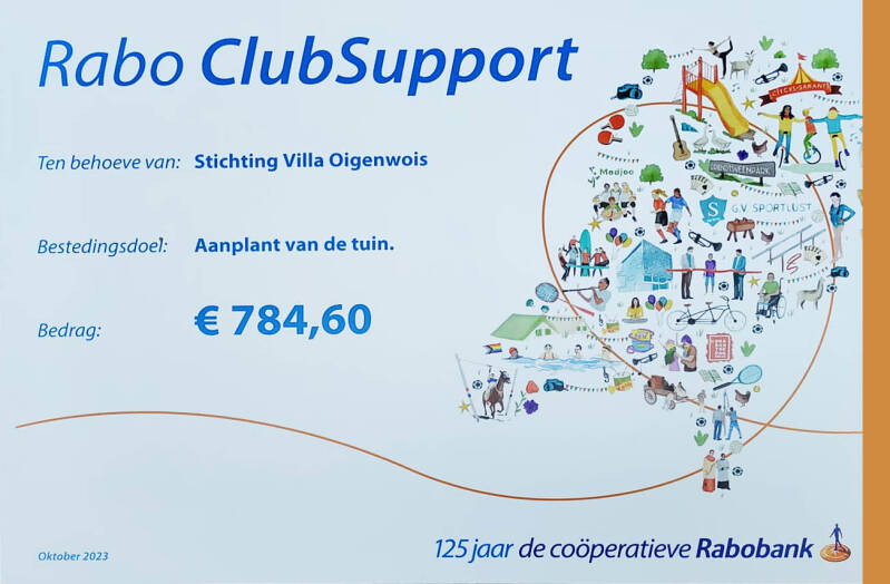 Afgelopen week zijn de bedragen voor de Rabo Clubsupprt bekend gemaakt. We zijn trots en dankbaar voor alle stemmen die zijn uitgebracht op Villa Oigenwois. De actie van Rabo Clubsupport heeft het prachtige bedrag van € 1.727,52 opgebracht. Daar zullen we weer mooie dingen mee gaan doen en maken voor onze bewoners.