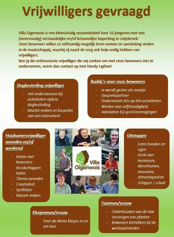 Villa Oigenwois is een project dat op 2013 is gestart. Villa Oigenwois is een door ouders opgezet wooninitiatief voor jongvolwassene met meervoudig beperkingen, onder de slogan Onbeperkt Mooi Wonen! Na bijna 10 jaar, op 1 oktober 2022 is een langgekoesterde droom van veel bewoners en hun ouders uitgekomen. Sindsdien is Villa Oigenwois is van een huis, tot een thuis geworden.